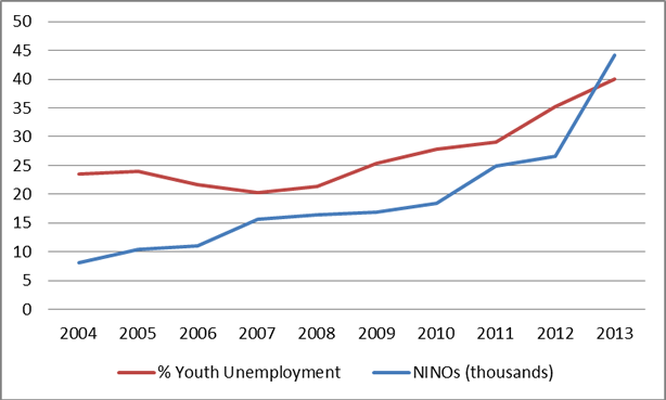 Figure 3. Italy - Youth unemployment and National Insurance numbers issued